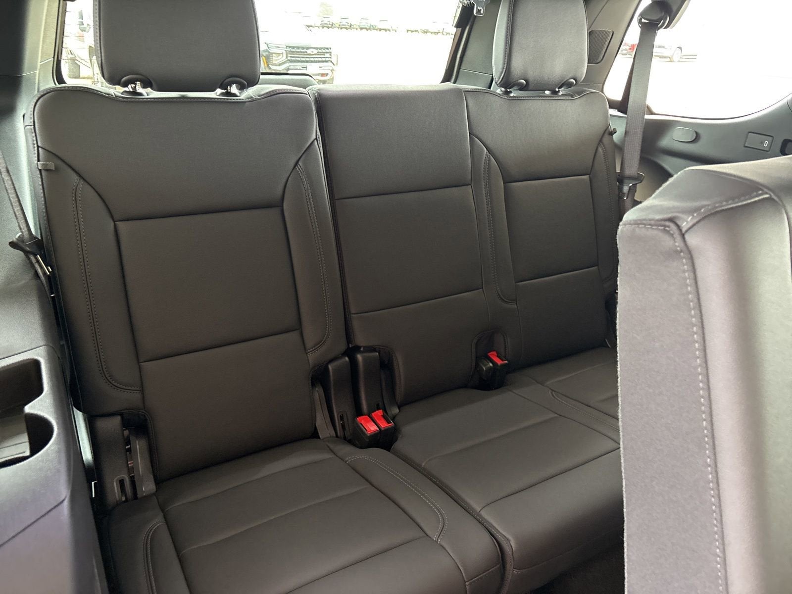 This vehicle comes nicely equipped with Advanced Trailering Package (Blind Zone Steering Assist with Trailering, Hitch View with Pan/Zoom Image Adjustment, and Smart Trailer Integration Indicator), Max Trailering Package (Integrated Trailer Brake Controller), Sun and Tow Package (Dual-Pane Power Panoramic Sunroof), 1st and 2nd Row Color-Keyed Carpeted Floor Mats, 2-Speed Active Electronic AutoTrac Transfer Case, 2-Way Power Driver Lumbar Seat Adjuster, 2-Way Power Front Passenger Lumbar Seat Adjuster, 3-Spoke Wrapped Steering Wheel, 3.23 Rear Axle Ratio, 3rd Row Manual 60/40 Split-Folding Bench Seats, 3rd row seats: split-bench, 4-Wheel Disc Brakes, 6 Speakers, 6-Speaker Audio System Feature, 8-Way Power Driver Seat Adjuster, 8-Way Power Front Passenger Seat Adjuster, ABS brakes, Air Conditioning, Alloy wheels, AM/FM radio: SiriusXM with 360L, Apple CarPlay/Android Auto, Auto High-beam Headlights, Auto-Dimming Inside Rear-View Mirror, Auto-dimming Rear-View mirror, Automatic temperature control, Black Tubular Assist Steps, Brake assist, Bright Front and Rear Door Sill Plates, Bumpers: body-color, Color-Keyed Carpeting Floor Covering, Compass, Delay-off headlights, Driver door bin, Driver vanity mirror, Dual Exhaust System, Dual front impact airbags, Dual front side impact airbags, Electronic Stability Control, Emergency communication system: OnStar and Chevrolet connected services capable, Exterior Parking Camera Rear, Floor Console with Storage Area, Four wheel independent suspension, Front anti-roll bar, Front Bucket Seats, Front Center Armrest, Front dual zone A/C, Front fog lights, Front High-Approach Angle Fascia, Front LED Fog Lamps, Front reading lights, Frontal Driver and Outboard Passenger Airbags, Fully automatic headlights, Garage door transmitter, Heated door mirrors, Heated Driver and Front Passenger Seats, Heated front seats, Hill Descent Control, Illuminated entry, Interior Camera, Key Card, Leather-Appointed Seat Trim, Low tire pressure warning, Memory seat, Memory Settings For Driver, Navigation system: Google built-in compatibility (select service plan required, terms and limitations apply), Occupant sensing airbag, Outside temperature display, Overhead airbag, Overhead console, Panic alarm, Passenger door bin, Passenger vanity mirror, Power door mirrors, Power driver seat, Power Liftgate, Power passenger seat, Power steering, Power windows, Premium audio system: Chevrolet Infotainment 3 Premium, Premium Smooth Ride Suspension, Radio data system, Radio: 17.7 Diagonal Advanced Color LCD Display, Rain sensing wipers, Rear air conditioning, Rear anti-roll bar, Rear Power Liftgate, Rear reading lights, Rear seat center armrest, Rear window defroster, Rear window wiper, Red Horizontal-Mounted Recovery Hooks, Remote keyless entry, Remote Start, Security system, SiriusXM with 360L Trial Subscription, Speed control, Speed-sensing steering, Split folding rear seat, Spoiler, Steering wheel mounted audio controls, Tachometer, Telescoping steering wheel, Tilt steering wheel, Traction control, Trip computer, Universal Home Remote, USB Ports, Variably intermittent wipers, Voltmeter, Wheels: 20 x 9 Bright Machined Aluminum, Wireless Phone Charging, and Z71 Exterior Features.