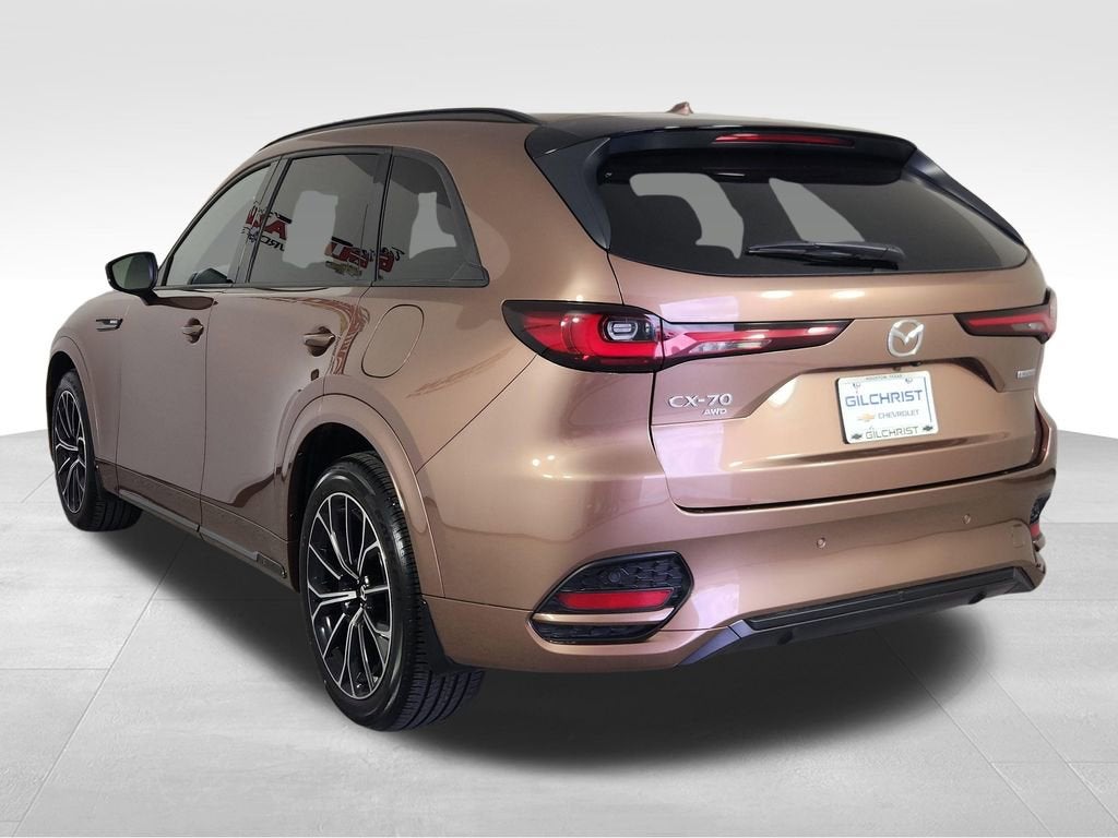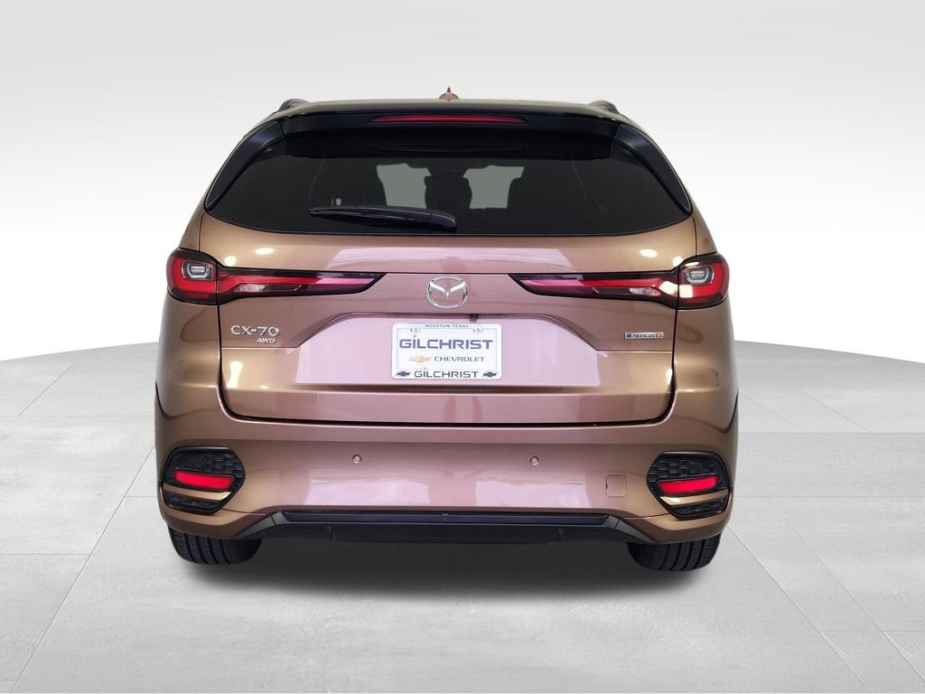 2025 Mazda CX-70 3.3 Turbo S Premium AWD CLEAN CARFAX Turbo Inline-6 Panoramic Roof Bose Audio AWD Luxury SUVIf you are searching for a 2025 Mazda CX-70 for sale, Mazda CX-70 Turbo S Premium AWD, or a luxury midsize SUV with strong performance and premium features, this one stands out. Finished in Melting Copper Metallic with a Black leather interior, this CLEAN CARFAX CX-70 delivers bold styling, upscale comfort, and impressive turbocharged power.Powered by a 3.3L turbocharged inline-6 engine paired with Mazda Intelligent All-Wheel Drive, this CX-70 offers smooth acceleration, responsive handling, and confidence in all driving conditions. Inside, the cabin is refined and driver-focused, loaded with high-end materials, advanced technology, and comfort features designed for everyday driving.Key Features3.3L Turbocharged Inline-6 EngineAutomatic TransmissionAll-Wheel DriveBlack Leather InteriorHeated Front SeatsVentilated Front SeatsPanoramic MoonroofBose Premium Audio SystemMazda Connect Infotainment SystemNavigation SystemApple CarPlay and Android AutoVoice Command21-Inch Aluminum Alloy WheelsPremium Interior FinishesSafety and Driver AssistanceAdaptive Cruise Control with Stop and GoBlind Spot MonitoringLane Keep Assist360-Degree View MonitorSmart Brake SupportMazda i-Activsense Safety SuiteRearview CameraAdvanced Driver Assistance FeaturesCarfax HighlightsClean CarfaxWhy Buy from Gilchrist ChevroletAt Gilchrist Chevrolet, we are proud to offer quality pre-owned vehicles, transparent pricing, and a hassle-free buying experience. As part of a family-owned Texas auto group with over 22 locations, we are committed to helping you find the right vehicle with confidence. Shop with Gilchrist Chevrolet for exceptional value and trusted service in Houston.